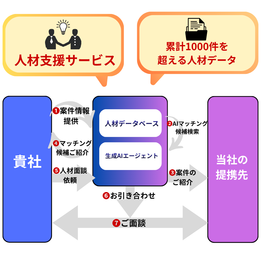 私たちは数多くのコンサルティング実績から生成AIエージェント&担当営業がIT案件に最適な人材を提案します。